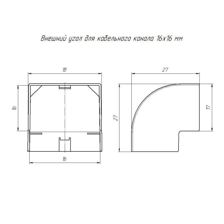 Внешний угол 16х16 мм (4 шт/комп) Промрукав