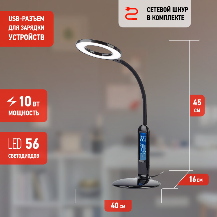 Настольный светильник ЭРА NLED-476-10W-BK светодиодный черный