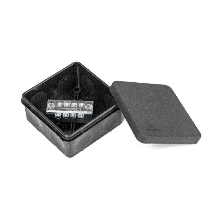 Коробка распределительная для прямого монтажа двухкомпонентная (HF) в комплекте с 4-кл. зажимами, сечение до 1,5 мм², 80х80х40 черная Промрукав