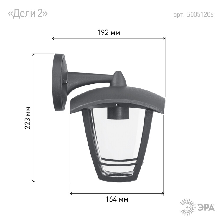 Светильник настен. для Л.Н. 40Вт E27 IP44(У1) «Дели 2» серый вниз НБУ 07-40-002