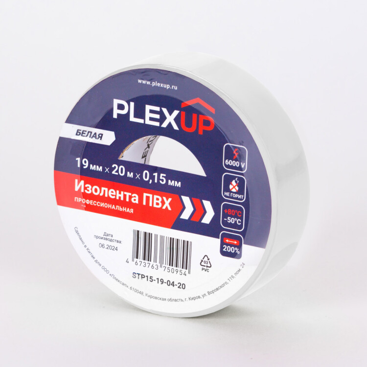 Изолента ПВХ белая 19 мм х 20 м толщина 0,15 мм