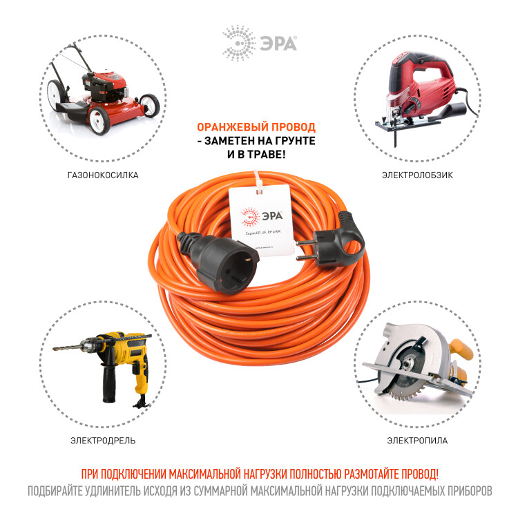 Удлинитель силовой ЭРА UPx-1e-3x1-20m в бухте с заземлением 1 розетка 20м ПВС 3х1мм2