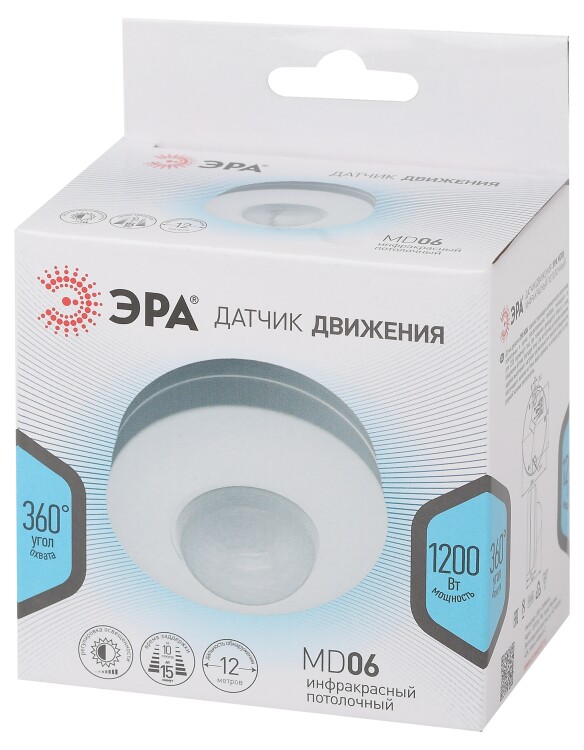 Датчик движения потолочный 1200Вт 16м 100-130V/200-240В AC 360° MD 06 белый