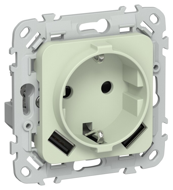 Розетка 2P+E с 2хUSB 3,1А безвинтовое крепление РСЮша11-1-ФлП панг FLITE