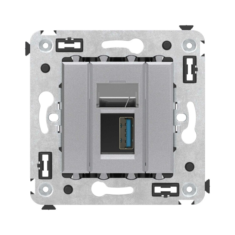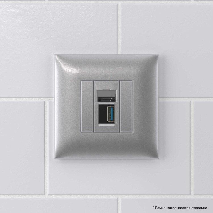 USB 3.0розетка одинарная в стену, тип А-А, "Avanti", "Закаленная сталь"
