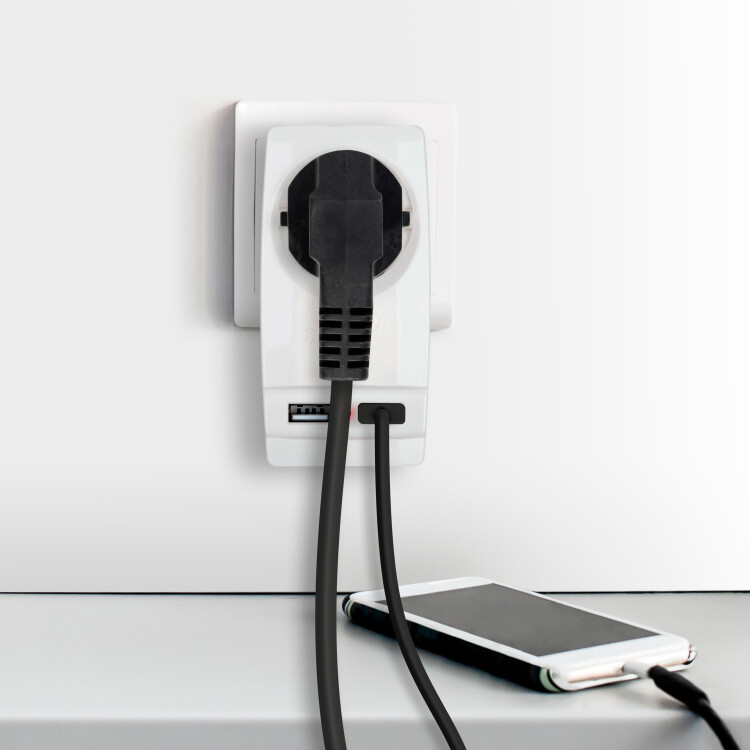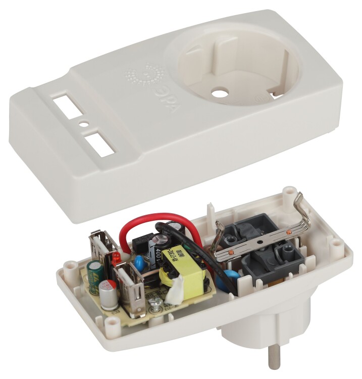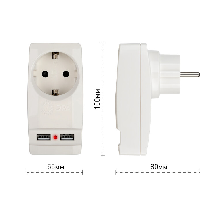 Адаптер 1 гнездо 220V + 2xUSB 2100mA, c заземл, со шторками белый