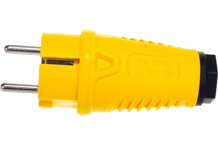 Вилка кабельная прямая, резина, IP54, 16A, c/з, жёлтый, чёрный