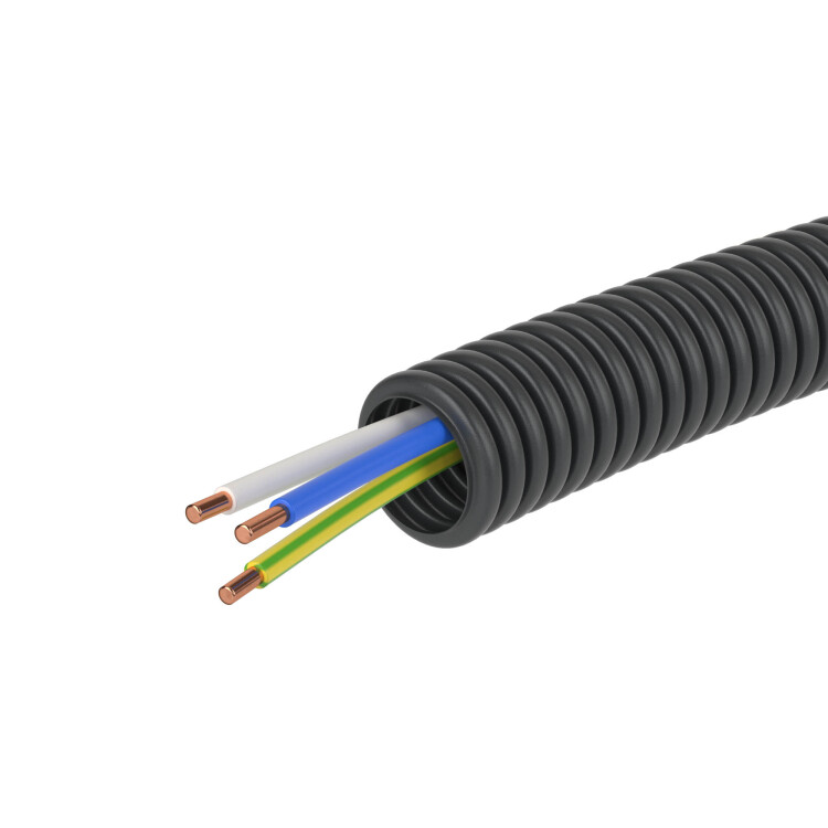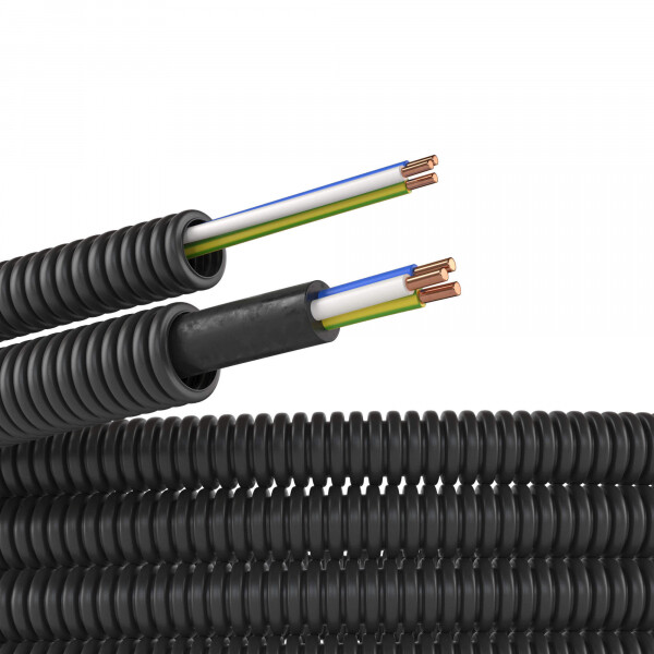 Электротруба ПНД гибкая гофр. д.16мм, цвет черный, с проводом ПуВ 3х2,5мм² РЭК "ГОСТ+", 50м