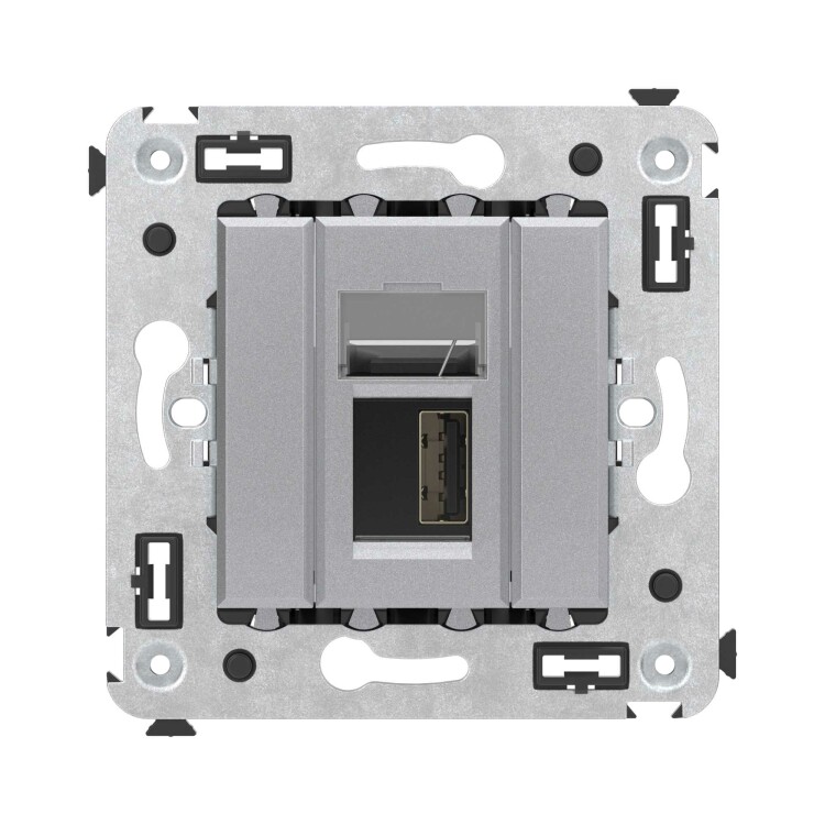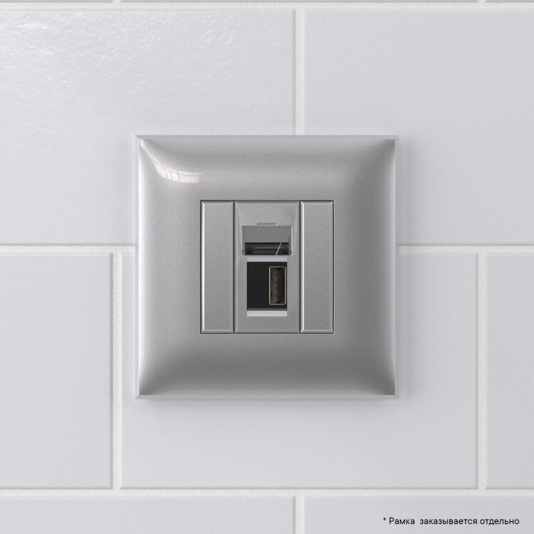 USB 2.0 розетка одинарная в стену, тип А-А, "Avanti", "Закаленная сталь"
