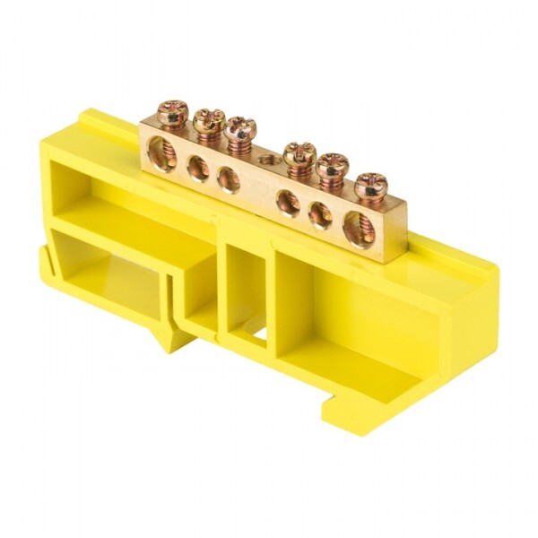 Шина "0" N (6х9мм) 6 отверстий латунь желтый изолятор на DIN-рейку розничный стикер EKF PROxima