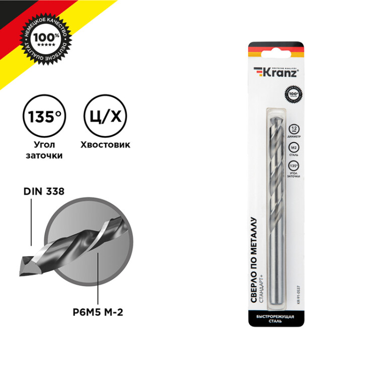 Сверло по металлу, 12х101х151 мм, (1 шт. в уп.), Р6М5, Стандарт+