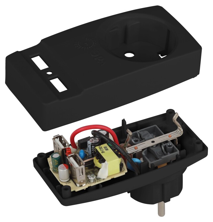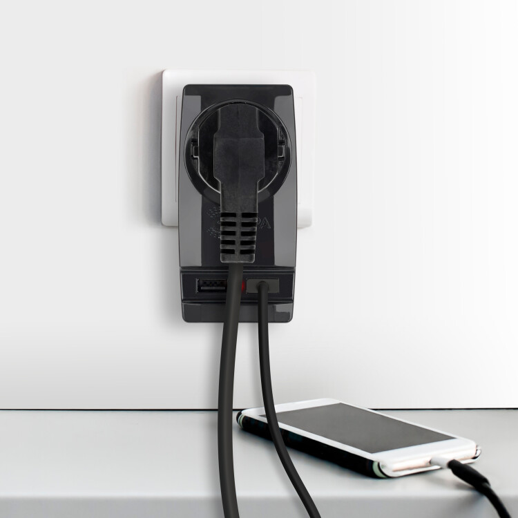 Адаптер 1 гнездо 220V + 2xUSB 2100mA, c заземл, со шторками черный