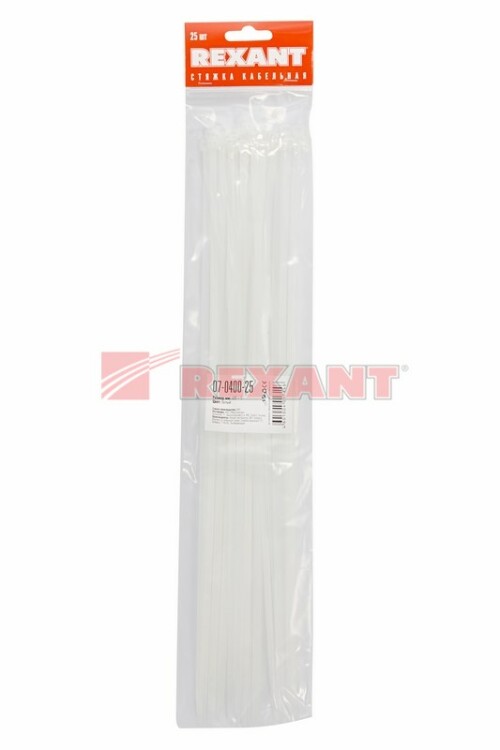 Стяжка кабельная нейлоновая 400x4,8мм, белая (25 шт/уп) REXANT