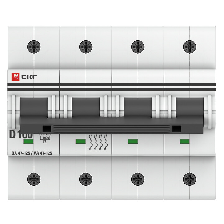 Автомат. выкл. 4-пол. 100А тип D 15кА серия ВА 47-125 EKF PROxima