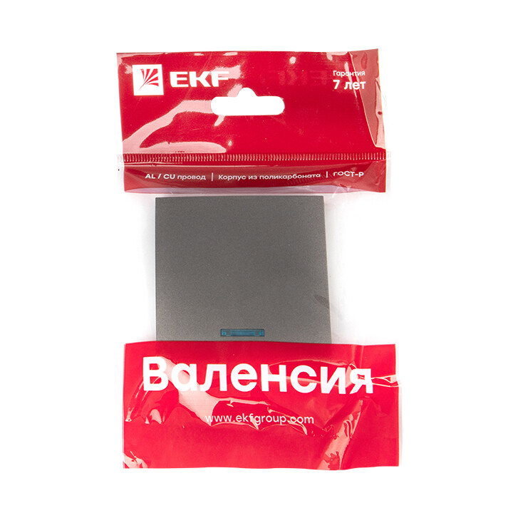 Валенсия лицевая панель выключателя 1-кл. с индикатором 10А графит EKF PROxima