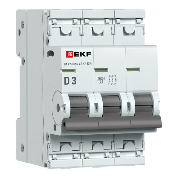 Автоматический выключатель ВА 47-63N 3P 3А (D) 4,5 кА PROXIMA EKF