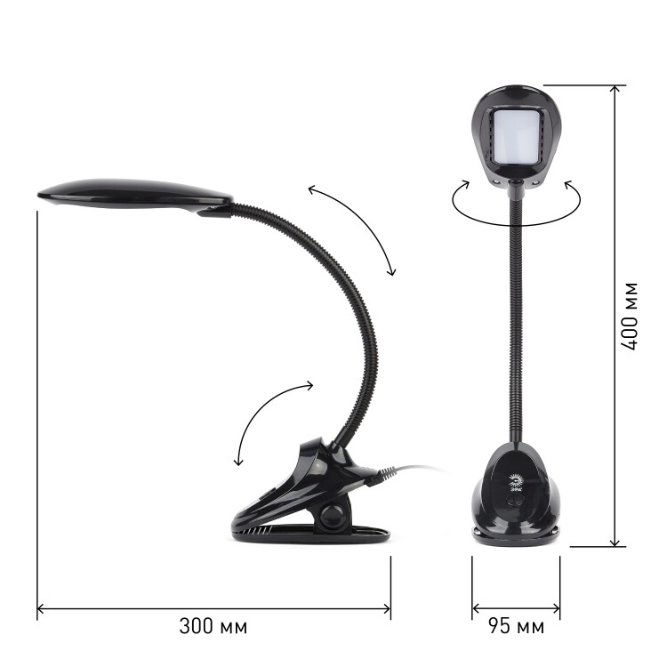 Настольный светильник ЭРА NLED-478-8W-BK светодиодный на прищепке черный