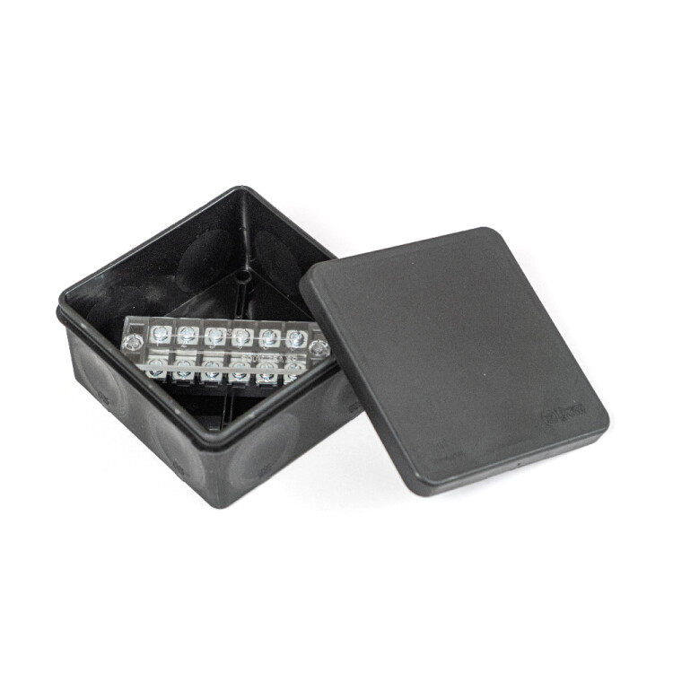 Коробка распределительная для прямого монтажа двухкомпонентная (HF) в комплекте с 6-кл. зажимами, сечение до 2,5 мм², 100х100х50 черная Промрукав