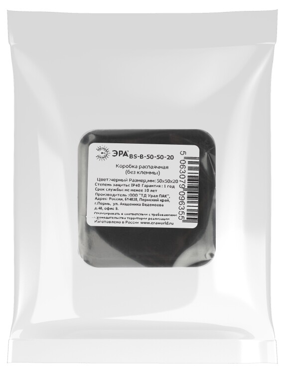 Распаячная коробка ЭРА BS-B-50-50-20 для кабель-канала черная 50х50х20мм IP40
