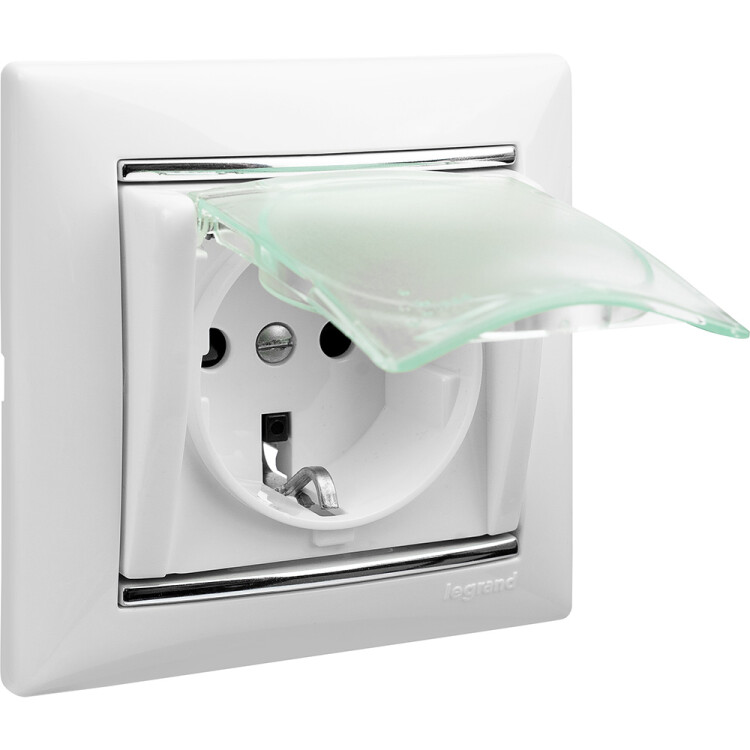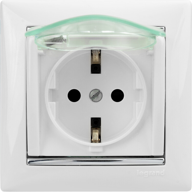Розетка 2P+E 16A винтов. зажим с крышкой IP44 белый Valena