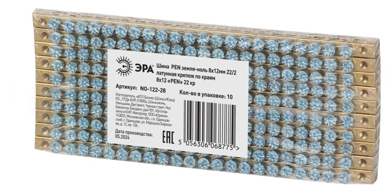 Шина ЭРА NO-122-28 PEN земля-ноль 8х12мм 22/2 латунная крепеж по краям