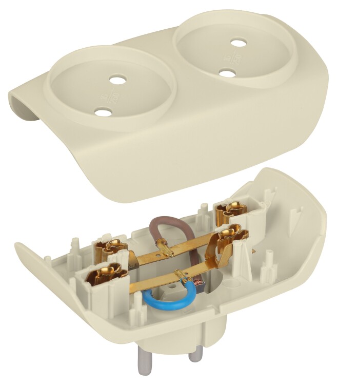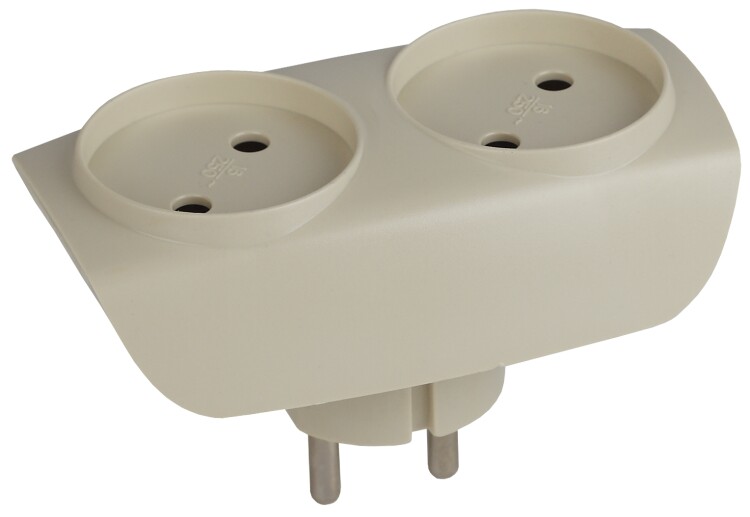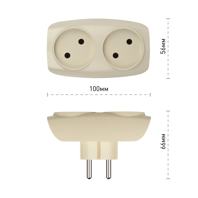 Разветвитель электрический ЭРА SP-2-I на 2 розетки без заземления 16А слоновая кость