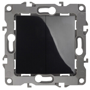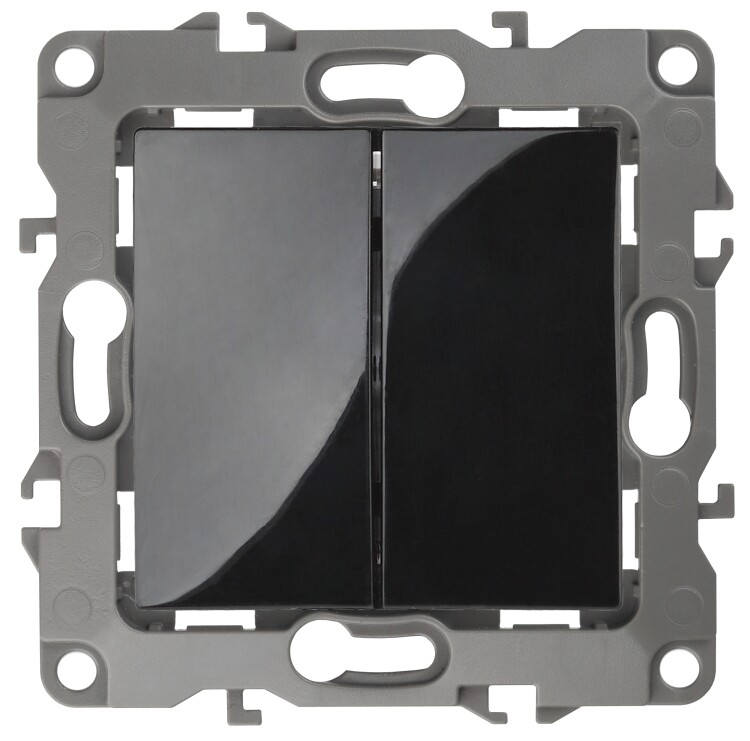12-1104-06 ЭРА Выключатель двойной, 10АХ-250В, IP20, Эра12, чёрный (10/100/3200)