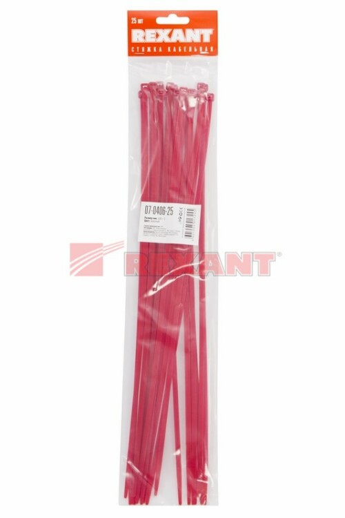 Стяжка кабельная нейлоновая 400x4,8мм, красная (25 шт/уп) REXANT