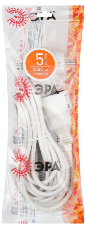 Удлинитель, 1 розетка, длина 5 м, 10А, ПВС 3х0.75 мм?, с/з, IP20, пластик, белый, UX-1е-5m
