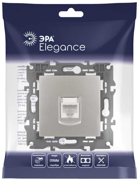 Розетка ЭРА Elegance 14-3107-16 RJ45, титан
