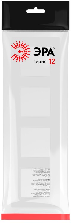 Рамка для розеток и выключателей ЭРА Серия 12 12-5204-01М на 4 поста, Классик, белый матовый