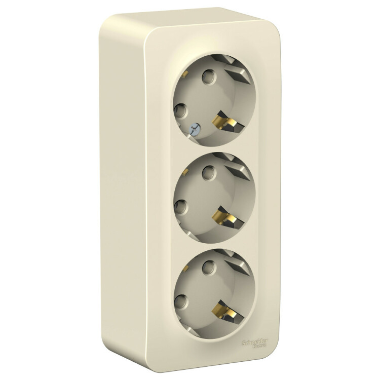 Розетка 3х2P+E 16А 250В накладной монтаж молочный BLANCA