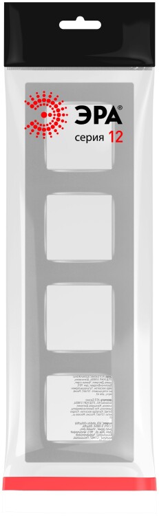 Рамка для розеток и выключателей ЭРА Серия 12 12-5204-03 на 4 поста, Классик, алюминий
