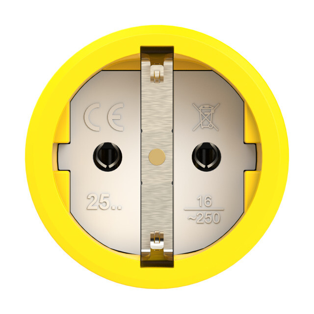 Розетка кабельная, 16А, с/з, IP54, резина, жёлтый, чёрный, с крышкой