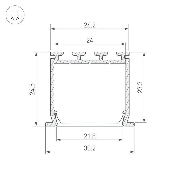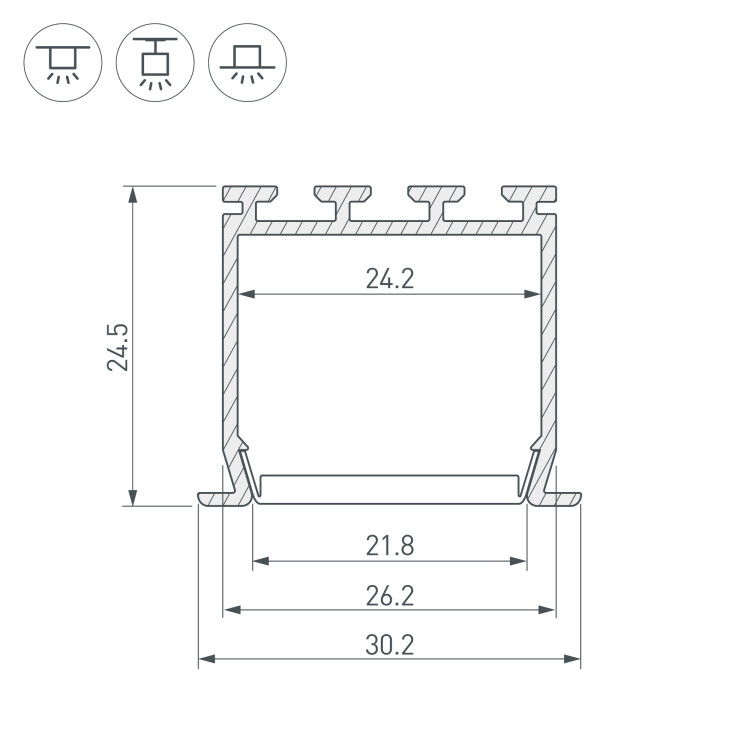 Алюминиевый Профиль встраиваемый PLS-LOCK-H25-FS-2000 ANOD (2 метра)
