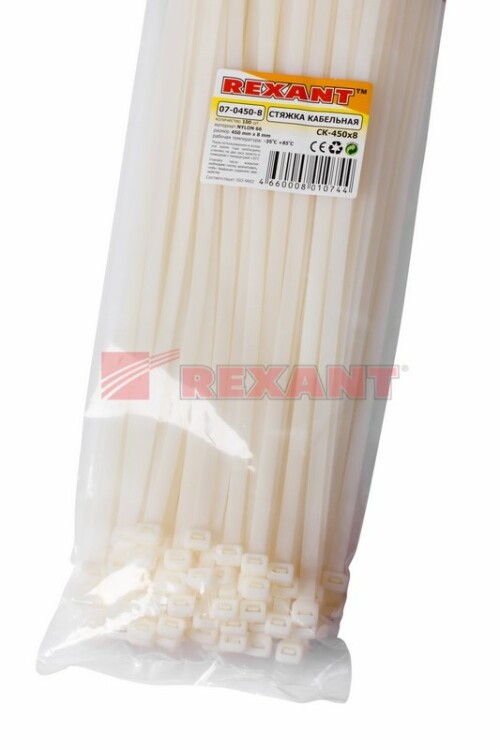 Хомут кабельный нейлон 7,6x450 мм, белый (100 шт/уп)