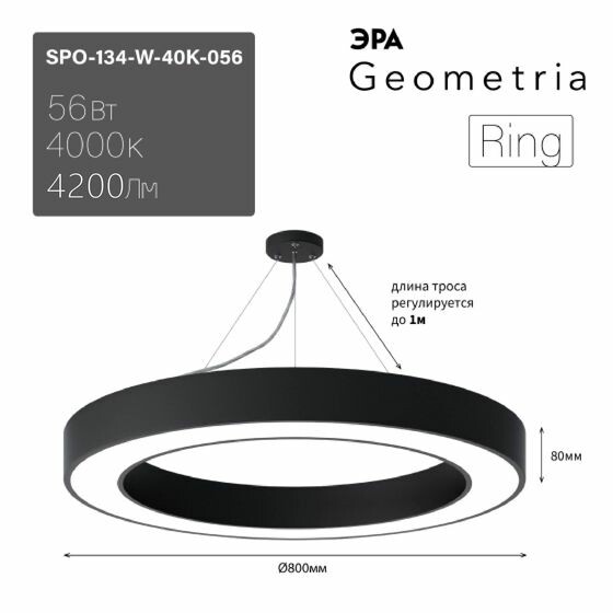 Светильник LED ЭРА Geometria SPO-134-W-40K-056 Ring 56Вт 4000К 4200Лм IP40 800*80 белый подвесной драйвер внутри