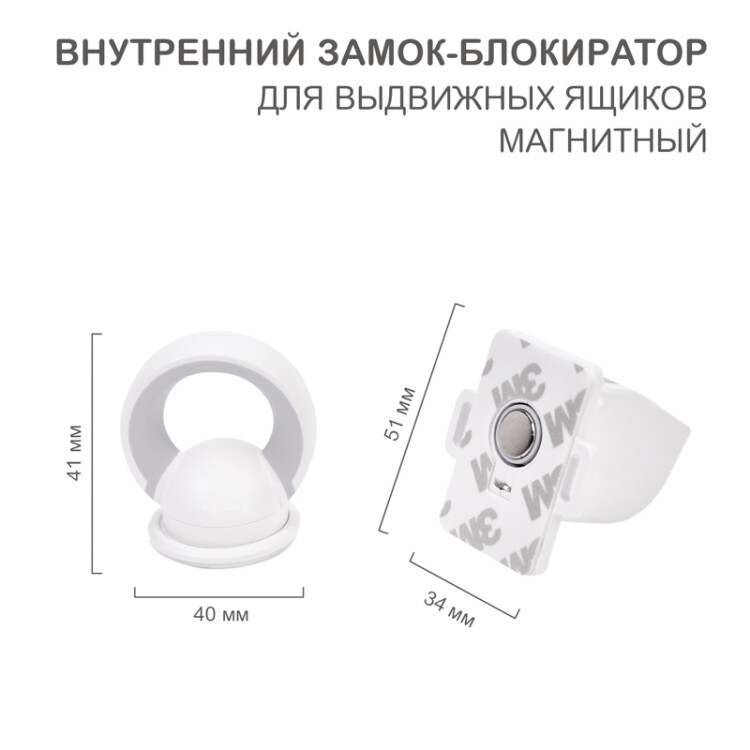 Внутренний магнитный замок-блокиратор для выдвижныx ящиков (4 шт/уп) HALSA