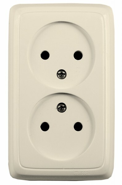 РА16-144-01 Розетка открытой установки, двухместная, со шторками, с изолирующей пластиной, цвет слоновая кость