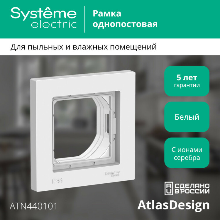 Рамка 1 пост IP44 белый Atlas Aqua