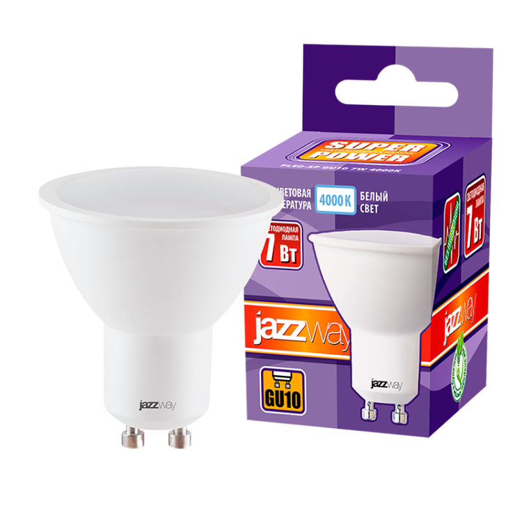 Лампа светодиодная 7 Вт 230В GU10 d=51mm, термопластик, белый