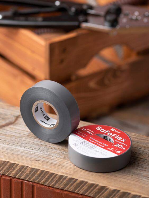 Изолента ПВХ серо-стальная 19 мм х 20 м SafeFlex