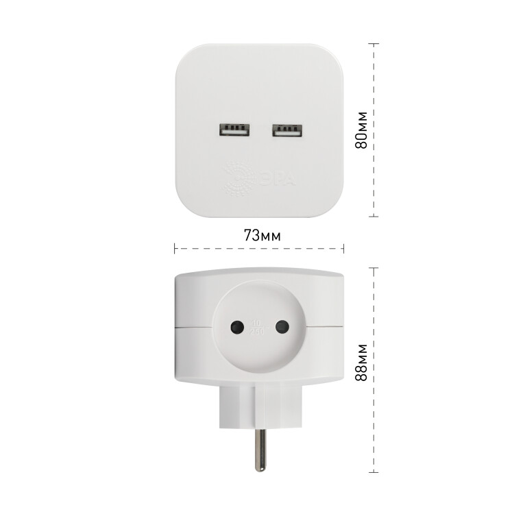 Разветвитель электрический ЭРА SP-4-USB-W на 4 розетки + 2xUSB 2400mA, без заземл 10А (белый)