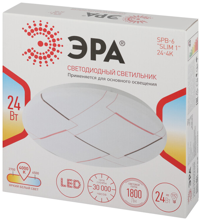 Светильник потолочный светодиодный ЭРА Slim без ДУ SPB-6 Slim 1 24-4K 24Вт 4000K