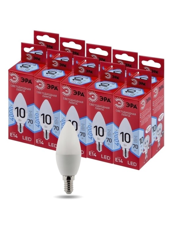 Лампочка светодиодная ЭРА RED LINE LED B35-10W-840-E14 R Е14 / E14 10 Вт свеча нейтральный белый свет