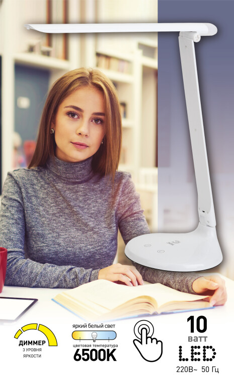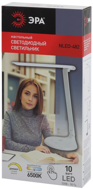 Настольный светильник ЭРА NLED-482-10W-W светодиодный с ночником белый
