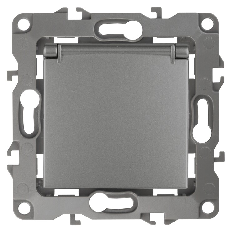 12-2103-12 Розетка 2P+E со шторками с крышкой графит Эра12