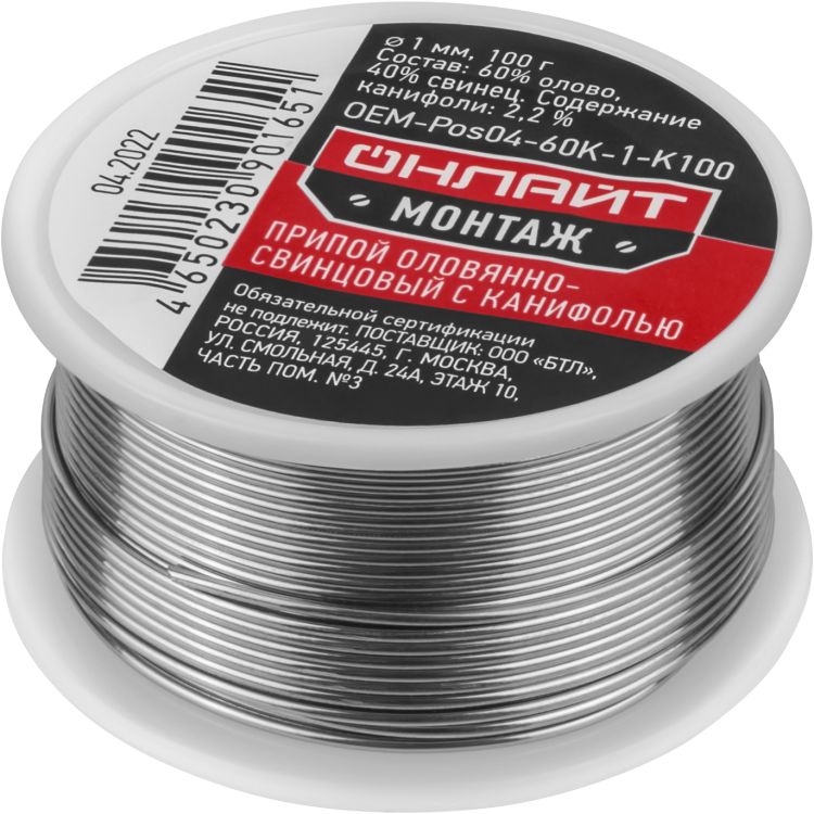Припой ОНЛАЙТ 90 165 OEM-Pos04-60K-1-K100 (катушка, 1мм, 100г)
