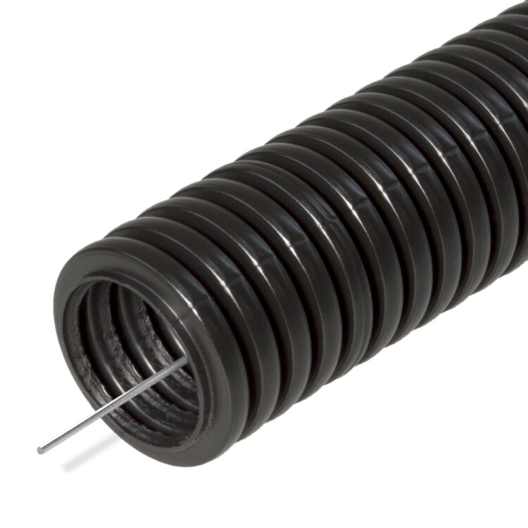 Труба гофрированная ПА безгалогенная (HF) стойкая к ультрафиолету черная с/з d20 мм (50м/3600м уп/пал) Промрукав