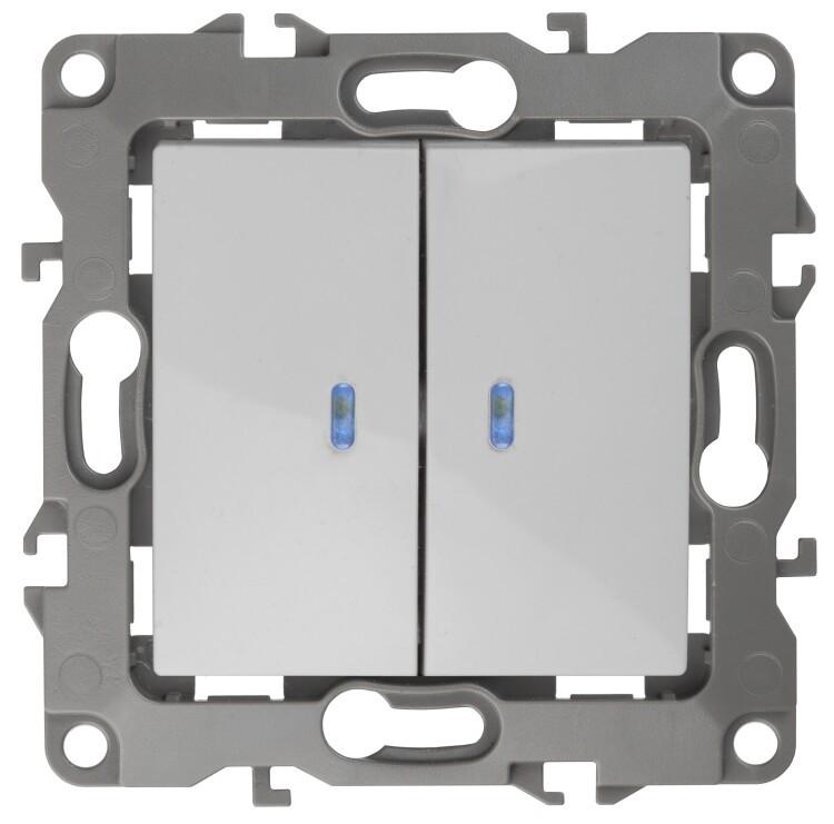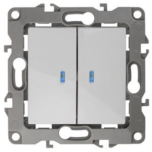 12-1105-01 ЭРА Выключатель двойной с подсветкой, 10АХ-250В, IP20, Эра12, белый (10/100/3200)